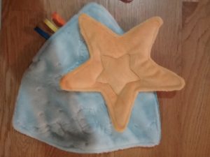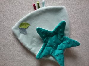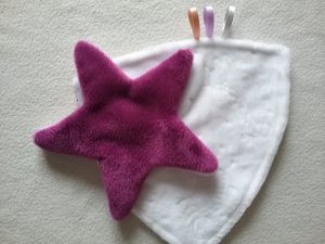 Ce doudou étoile est réalisé en minky, velours et coton. Plein de douceur, l’étoile est placé sur un triangle légèrement arrondi. Jouet facile à prendre en main, il rassurera bébé, et l’accompagnera partout, pour les câlins comme dans ses premières expériences.
